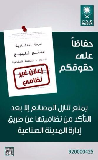 نبهت الهيئة السعودية للمدن الصناعية ومناطق التقنية عملائها باتباع الإجراءات النظامية عند الرغبة ببيع المصنع أو تعديل عقود التأجير وذلك حفاظاً على حقوقهم المادية.