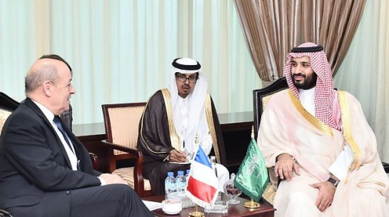 التقى الأمير محمد بن سلمان بن عبدالعزيز وزير الدفاع رئيس الديوان الملكي المستشار الخاص لخادم الحرمين الشريفين في أبو ظبي اليوم وزير الدفاع بالجمهورية الفرنسية جان ايف لو دريا وذلك على هامش انعقاد معرض ومؤتمر الدفاع الدولي الثاني عشر آيدكس 2015.
