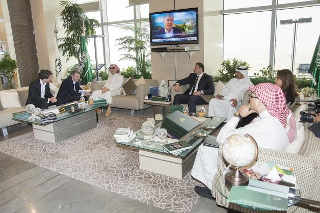استقبل الأمير الوليد بن طلال بن عبدالعزيز آل سعود، رئيس مجلس إدارة شركة المملكة القابضة، جين لوي بورلو، المبعوث الخاص للرئيس الفرنسي فرانسوا أولاند.