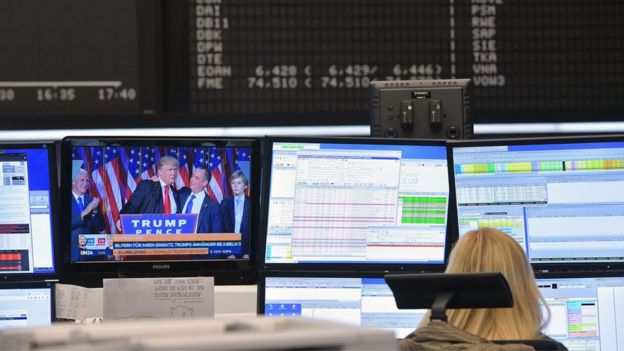 وفتحت أسواق المال الأوروبية الأربعاء على انخفاض عقب فوز ترامب وهبط مؤشر ستوكس 600 الأوروبي 2.2 في المئة، بينما هبط مؤشر داكس الألماني بنسبة 2.9 في المئة حسبما تناولته بي بي سي”.