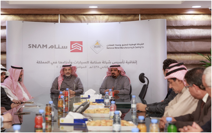 وقعت الشركة الوطنية السعودية لصناعة السيارات مذكرة تفاهم مع الشركة الوطنية لتصنيع وسبك المعادن (معدنية)، وذلك بانضمام شركة معدنية كشريك مؤسس لشركة صناعة السيارات، والتي ستؤسس مشروعها على مساحة تبلغ مليون متر مربع في مدينة الجبيل الصناعية، إضافة إلى تخصيص مليون متر مربع آخر لمجمع مصانع أجزاء السيارات من خلال تأسيس شركاتمشتركة (JointVentures) مع موردي الخط الأول الدوليين والشركات السعودية المحلية وشركة المشروع.