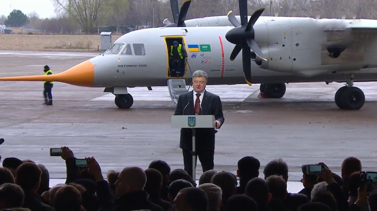 وبعد تجربة الإقلاع الناجحة للطائرة السعودية الأوكرانية، استقبل الرئيس الأوكراني طياري الطائرة عقب نزولهم منها، وقام بتسليم اللواء محمد عياش درع الطائرة (AN-132) بهذه المناسبة.