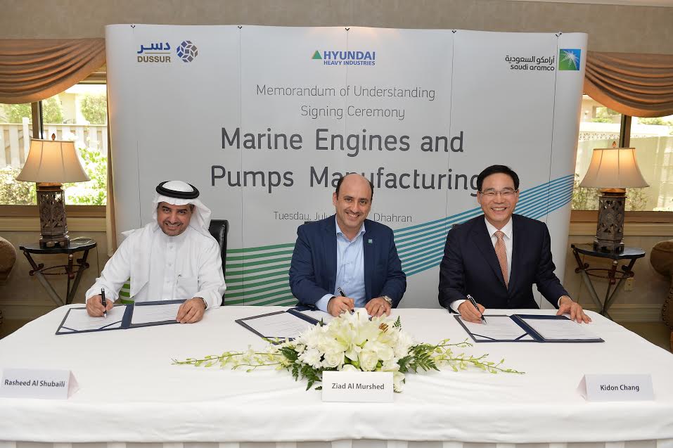 أعلنت كل من أرامكو السعودية، والشركة العربية السعودية للاستثمارات الصناعية “دسر”، وشركة هيونداي للصناعات الثقيلة، التوقيع على مذكرة تفاهم للتعاون المشترك في مجال تصنيع المحركات والمضخات في المملكة.