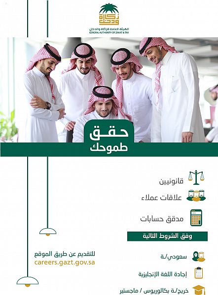 ودعت هيئة الزكاة والدخل الراغبين للتقديم بزيارة صفحة التوظيف على الرابط التالي www.careers.gazt.gov.sa .