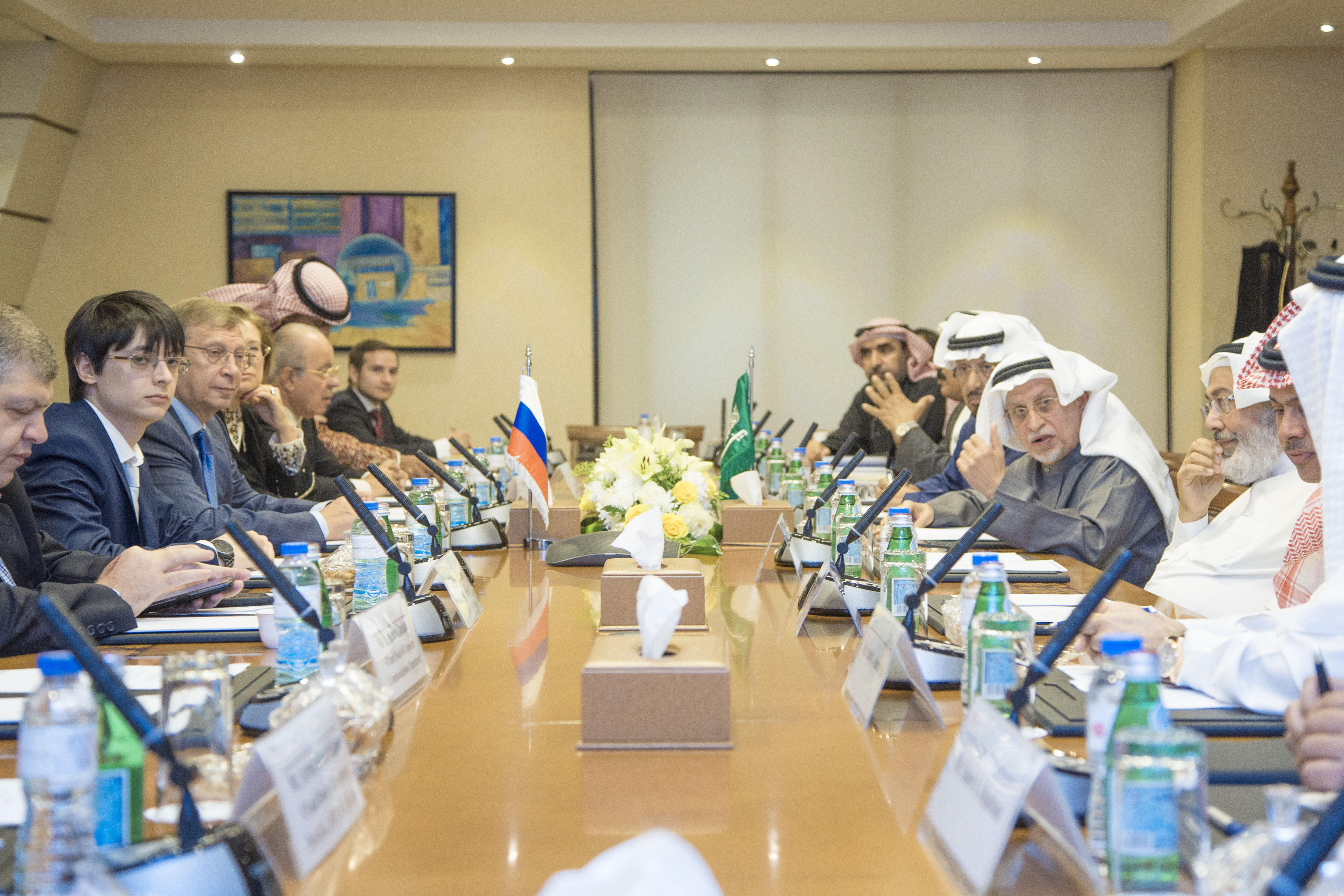 بحث وفد أعمال روسي رفيع المستوى برئاسة رئيس مجلس الأعمال الروسي – العربي ورئيس الجانب الروسي في مجلس الأعمال المشترك ورئيس مجلس إدارة الشركة المالية القابضة “سيستيما” الدكتور فلاديمير يفتوشينكوف خلال لقائه مؤخراً مع رئيس مجلس الأعمال السعودي الروسي الدكتور عبدالرحمن الزامل وعدد من أصحاب الأعمال السعوديين بمقر مجلس الغرف السعودية التطورات الاقتصادية بالمملكة وآفاق وفرص التعاون التجاري والاستثماري بين الجانبين.