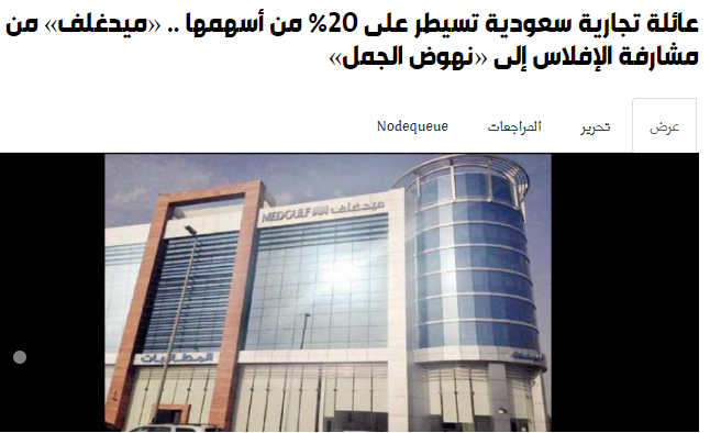 وكانت صحيفة مال انفردت في الـ 8 من اكتوبر الجاري بتقرير يشير الى تملك عائلة ابو نيان عن طريق شركتها القابضة اسهم تصل الى 20% من اسهم شركة ميد غلف، حيث نشر التقرير تحت عنوان (عائلة تجارية سعودية تسيطر على 20% من أسهمها .. «ميدغلف» من مشارفة الإفلاس إلى «نهوض الجمل») https://www.maaal.com/archives/20181009/113216 .
