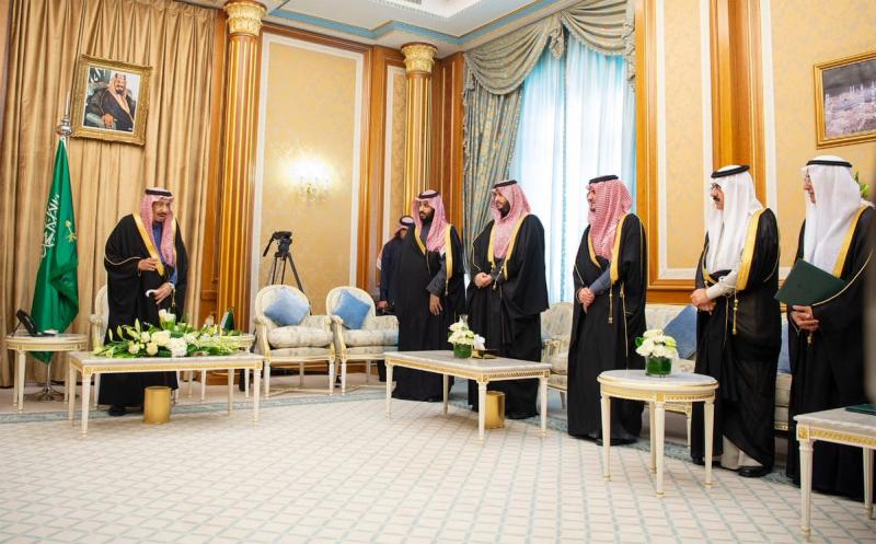 ثم تشرف الجميع بالسلام على خادم الحرمين الشريفين، واستمعوا إلى توجيهاته – أيده الله – .