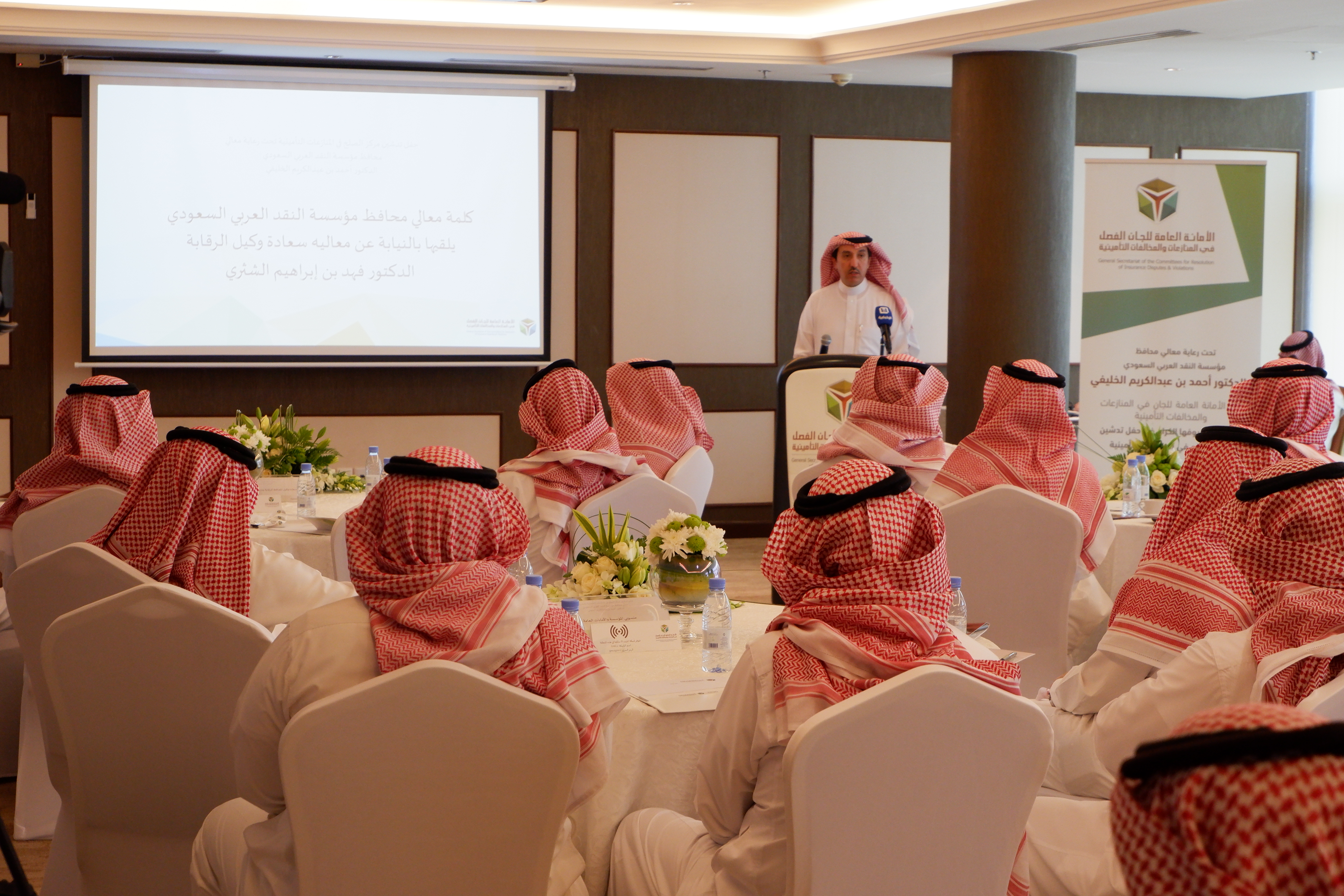 وبهذه المناسبة، رحب وكيل محافظ مؤسسة النقد العربي السعودي للرقابة الدكتور فهد بن إبراهيم الشثري، في كلمة القاها نيابة عن معالي محافظ المؤسسة، بالحضور في حفل تدشين مركز الصلح في المنازعات التأمينية بالأمانة العامة للجان، كما أعرب عن شكره لشركات التأمين على انضمامهم إلى عضوية المركز، ولسعادة الأمين العام والزملاء بالأمانة العامة للجان على جهودهم.