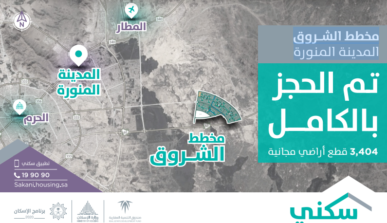 أعلن برنامج “سكني” التابع لوزارة الإسكان عن اكتمال حجز الأراضي المجانية في مخطط طريق الملك عبدالعزيز السكني، الواقع بالجهة الشرقية للمدينة المنورة، وذلك خلال الأيام الأولى من إطلاق عمليات الحجز في المخطط، مبيّناً أن وكالة الأراضي والشؤون الفنية بوزارة الإسكان تعمل على تطوير المخطط.