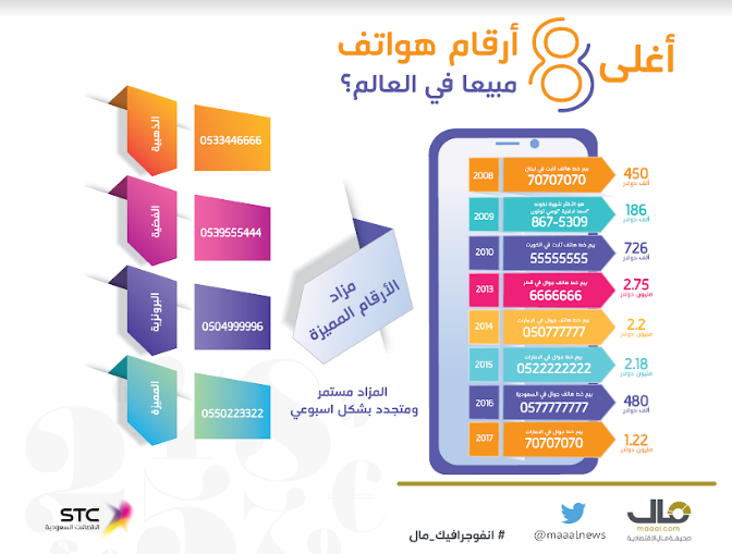 بالانفوجرافيك .. أغلى 8 أرقام هواتف مبيعا في العالم
