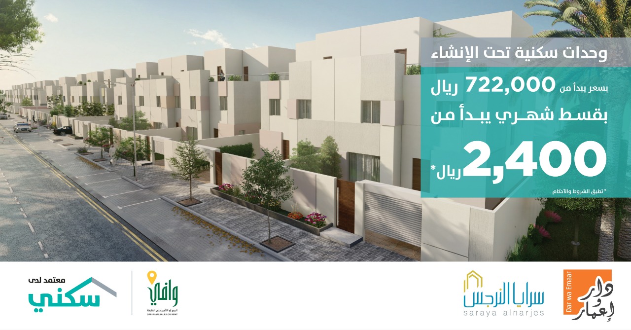 أعلن برنامج “سكني” التابع لوزارة الإسكان، إطلاق مشروع “سرايا النرجس” شمال مدينة الرياض، والذي يوفر 1984 وحدة سكنية “تحت الإنشاء” من نوع (تاون هاوس، شقق)، وبمساحات وتصاميم منوعة، كواحد من أكبر مشاريع الشراكة بين وزارة الإسكان والقطاع الخاص.