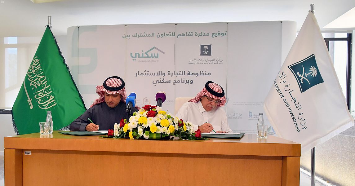 وقع وزير التجارة والاستثمار وزير الشؤون البلدية والقروية المكلف الدكتور ماجد بن عبدالله القصبي، ووزير الإسكان ماجد بن عبدالله الحقيل، اليوم بمقر وزارة التجارة والاستثمار بالرياض، اتفاقية تعاون بين منظومة التجارة والاستثمار ووزارة الشؤون البلدية والقروية وبرنامج “سكني”، يتولى من خلالها البرنامج تقديم خدمات إسكانية لمنسوبي المنظومة والوزارة، تشمل المستفيدين المدرجين في قوائم وزارة الإسكان وصندوق التنمية العقارية.