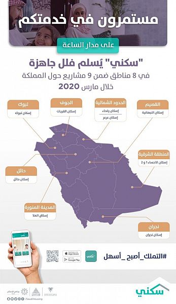 واصل برنامج “سكني” التابع لوزارة الإسكان تسليم الفلل الجاهزة في عدد من مشاريع الوزارة في مختلف مناطق المملكة، حيث شمل التسليم خلال شهر مارس الماضي 9 مشاريع تتوزع في 8 مناطق حول المملكة، إذ تمّت إجراءات التسليم بعد استكمال المستفيدين لعمليات الحجز وتوقيع العقد النهائي، بالتزامن مع فترة الاحترازات الصحية التي أعلنت عنها الجهات المعنية للحد من انتشار فايروس كورونا.