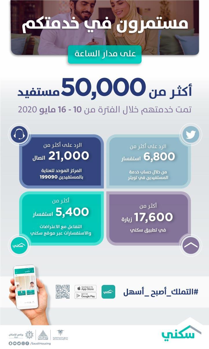 وقام حساب العناية بالمستفيدين (SaudiHousingCC@) على منصة “تويتر” بالإجابة على 6,850 استفسار عبر الحساب الذي خصصه “سكني” للإجابة على كافة أسئلة واستفسارات المواطنين على مدار الساعة، امتداداً لحرص البرنامج على خدمة كافة المواطنين وتلبية رغباتهم وتطلّعاتهم.