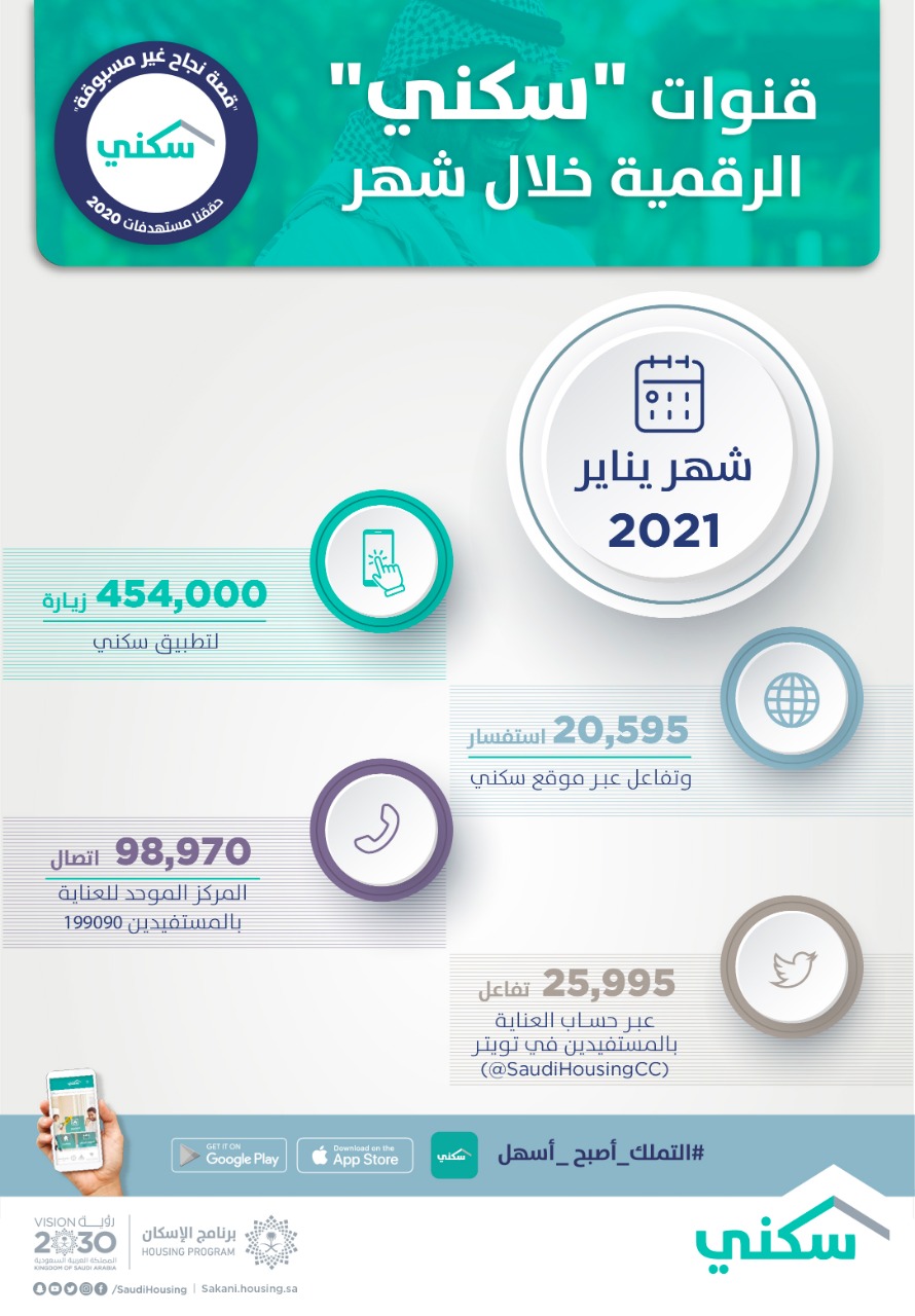 يُذكر أن برنامج “سكني” أعلن استفادة أكثر من مليون أسرة سعودية منذ انطلاق البرنامج في 2017، منها أكثر من 390 ألف أسرة جديدة خلال العام 2020 منها 138 ألف سكنت منازلها، ويسعى البرنامج لتمكين الأسر السعودية من امتلاك مسكنها الأول من خلال تقديم الخيارات والحلول السكنية التي تلبّي تطلّعاتهم وقدراتهم، وتيسير الحصول على المسكن المناسب بشكل أسرع وسعر أقل ضمن خيارات وحلول متعددة ودفعة أولى مُيسرة.