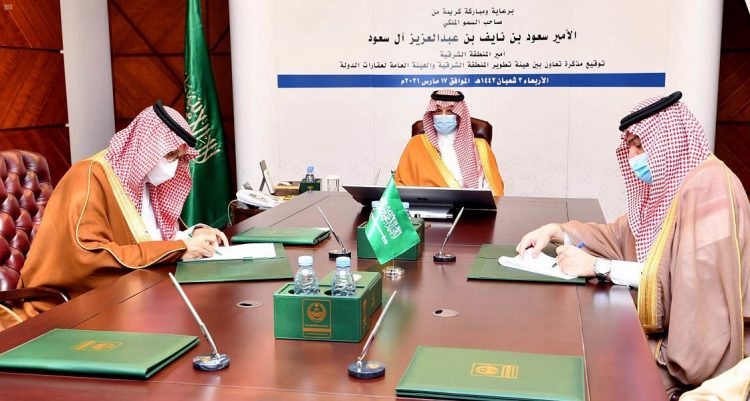 برعاية الأمير سعود بن نايف بن عبدالعزيز أمير المنطقة الشرقية رئيس مجلس إدارة هيئة تطوير المنطقة الشرقية، وقّع الأمير أحمد بن فهد بن سلمان بن عبدالعزيز نائب أمير المنطقة نائب رئيس مجلس إدارة هيئة تطوير المنطقة، ومحافظ الهيئة العامة لعقارات الدولة الأستاذ إحسان بن عباس بافقيه , في الإمارة اليوم, مذكرة تعاون بين الهيئتين، تعمل على تحقيق مستهدفات رؤية المملكة 2030 والتنمية المناطقية واستدامتها من خلال المشاركة الفاعلة بالأعمال والمعلومات المتاحة، وبما يدعم الشراكة مع القطاع الخاص، من خلال تمكينه في الاستثمار والتطوير والتنمية، وهو ما سيسهم في تنمية شاملة وتطوير مستدام بالمنطقة الشرقية وطرح فرص جديدة بالمنطقة.