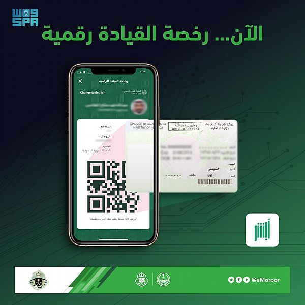 وأوضح المتحدث الرسمي للادارة العامة المرو،ر بأن النسخة الرقمية من رخصة القيادة ، والتي تم تطويرها بالتعاون مع الهيئة السعودية للبيانات والذكاء الاصطناعي ممثلة بمركز المعلومات الوطني ، معتمدة لدى الجهات الأمنية ، وفي كافة الاجراءات التي تقتضي أبرازها، كما أنها تتضمن رمز الاستجابة السريعة المتغير (QR Code)، ويمكن الاحتفاظ بنسخة منها على الجهاز الذكي واستخدامها دون الحاجة للاتصال بالانترنت.