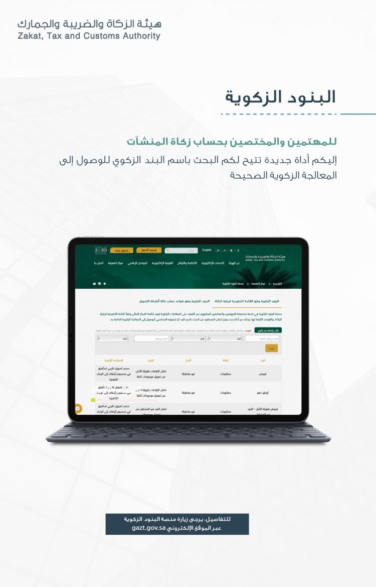 أطلقت هيئة الزكاة والضريبة والجمارك منصة البنود الزكوية بغرض تمكين المحاسبين والمختصين من التعرف على المعالجات الزكوية لبنود قائمة المركز المالي، وفقاً للائحة التنفيذية لجباية الزكاة وقواعد حساب زكاة أنشطة التمويل، والقواعد التابعة لها، وذلك عبر أداة بحث وفرز تمكن المستفيد من البحث باسم البند أو تصنيفه المحاسبي للوصول إلى المعالجة الزكوية الخاصة به.