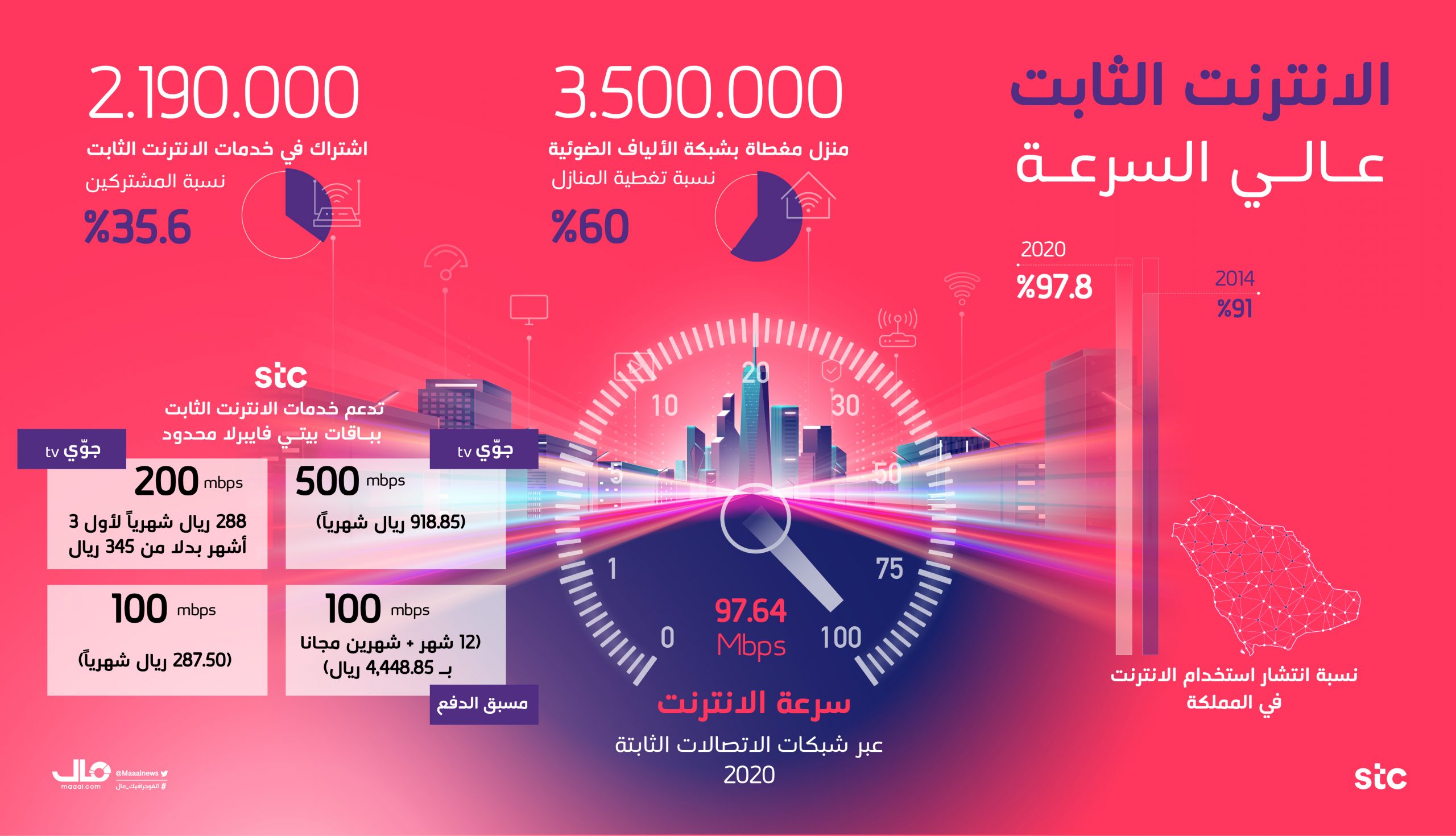 بالإنفوجرافيك .. تعرف على الانترنت الثابت عالي الجودة في المملكة