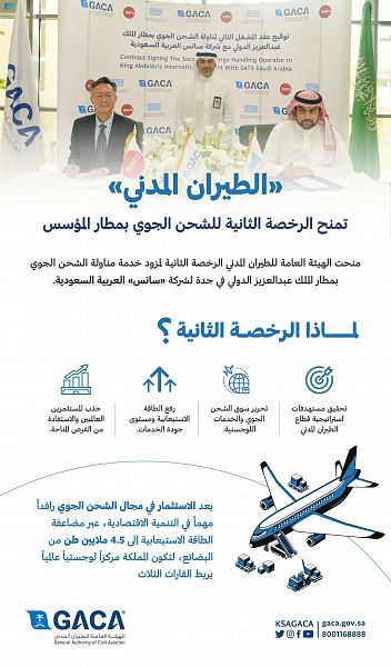 ومنحت الطيران المدني الرخصة بموجب عقد المشغل الثاني الذي جرى توقيعه في مطار الملك عبدالعزيز الدولي، حيث مثّل جانب الهيئة مدير عام الإيرادات والتشغيل التجاري سلطان السلطان، ومن جانب شركة «ساتس» المدير العام لي فون كين، بحضور الرئيس التنفيذي لشركة مطارات جدة ريان طرابزوني.