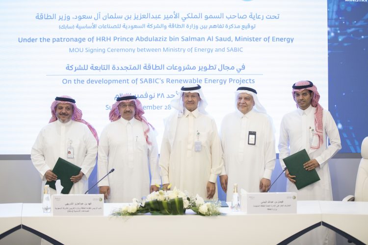 وقّعت وزارة الطاقة والشركة السعودية للصناعات الأساسية (سابك)، مذكرة تفاهم في مجال تطوير مشروعات الطاقة المتجددة، تقوم الوزارة من خلالها بدعم تطوير مشروعات الطاقة المتجددة لدى الشركة، والتأكد من جاهزية شبكات النقل وإجراء الدراسات التمهيدية اللازمة وأعمال الطرح والترسية لتلك المشاريع.