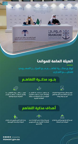 وتأتي المذكرة سعياً من الهيئة العامة للموانئ والمركز السعودي للتحكيم التجاري، لمواكبة حركة التطور في قطاع النقل البحري وخدمات الاستيراد والتصدير بالمملكة؛ من خلال تسهيل تسوية المنازعات الناشئة بين الأطراف ذوي العلاقة، مثل الوكلاء البحريين، والخطوط الملاحية، والمستوردين ومن ينوب عنهم، بما يخدم مصالح وغايات الطرفين، ويحقق أهدافهما بفاعلية واحترافية.