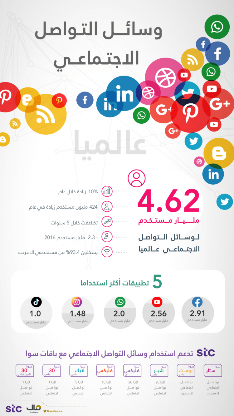 بالإنفوجرافيك .. 4.6 مليار مستخدم لوسائل التواصل الاجتماعي حول العالم