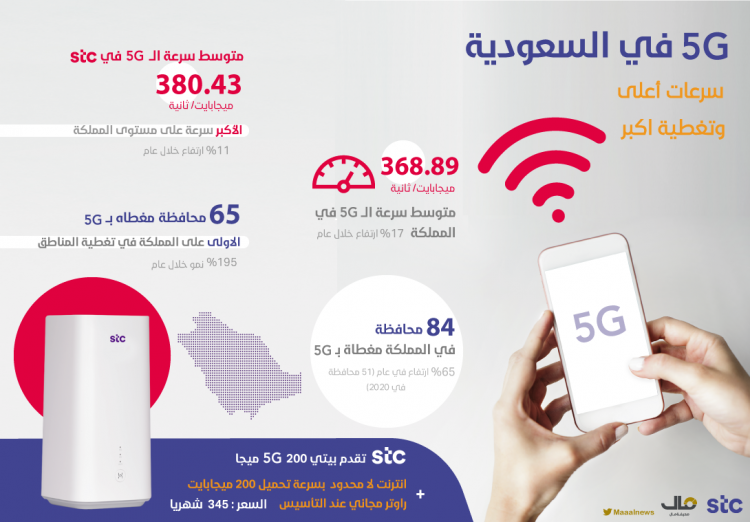 بالإنفوجرافيك .. سرعات أعلى وتغطية أكبر لـ 5G في السعودية