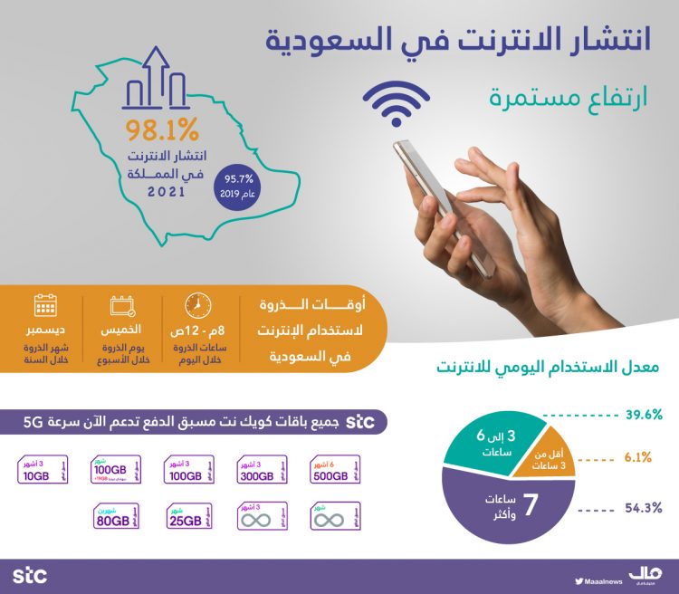 بالإنفوجرافيك .. 98.1% نسبة انتشار الإنترنت في السعودية