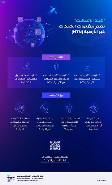 وبيّنت الهيئة أن تهيئة البيئة التنظيمية يأتي مواكبة للتطورات المتسارعة في مجال الاتصالات عبر الأقمار الصناعية والاتصالات عبر الشبكات الجوية، ويهدف إلى الحد من قيود دخول السوق، وتقليل الأعباء التنظيمية لتقديم خدمات الاتصالات عبر التقنيات اللاسلكية الحديثة، وتحقيق مبدأ “التقنية المحايدة” لتمكين جميع التقنيات غير الأرضية، إضافة إلى تعزيز الوضوح والشفافية من خلال نشر الأحكام والشروط والضوابط الفنية الخاصة بالشبكات غير الأرضية.