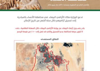 “الأراضي البيضاء”: 15 يومًا على انتهاء مهلة تسجيل الأراضي في الأحساء