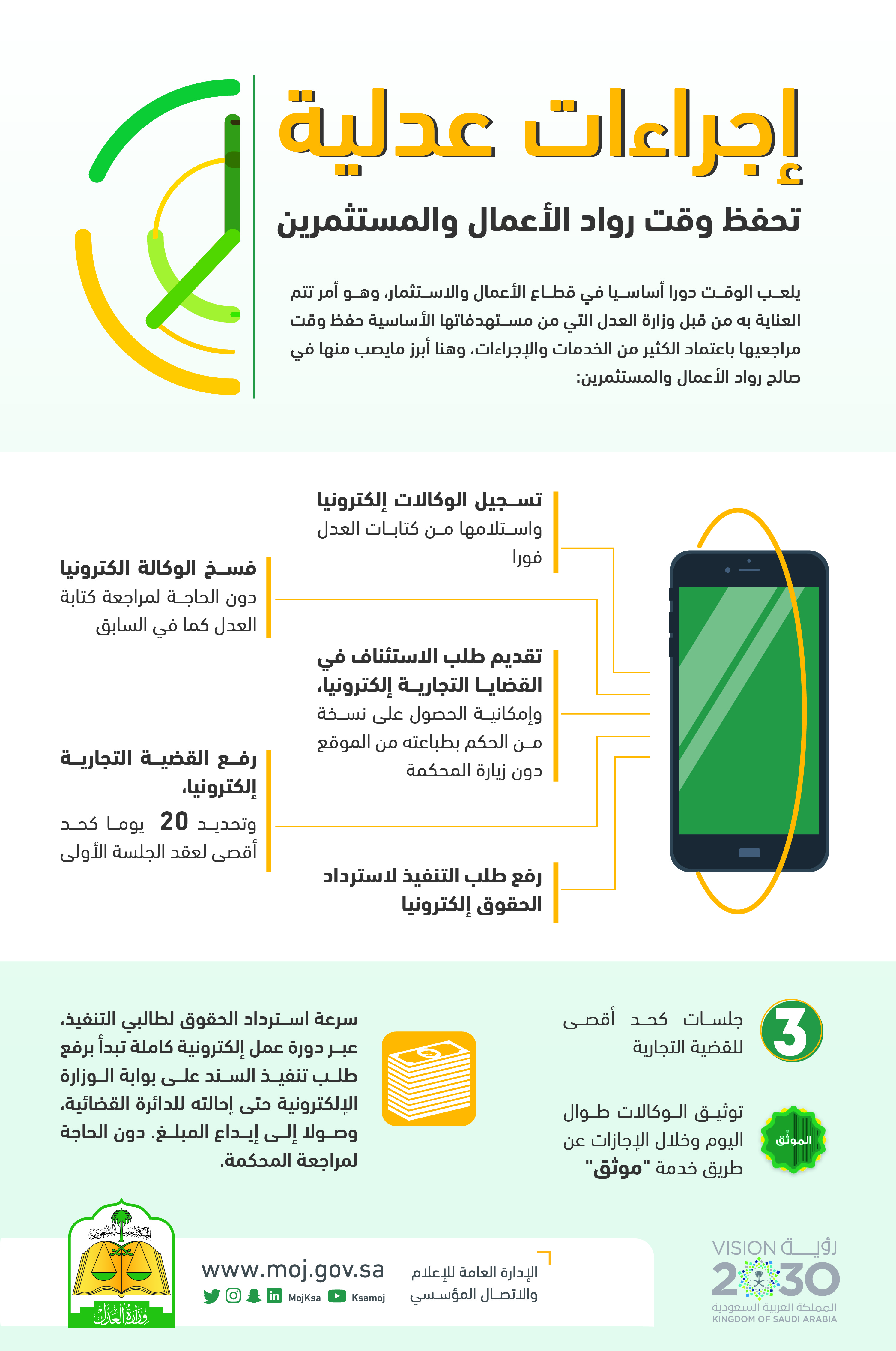 مبادرات عدلية تحفظ وقت رواد الأعمال والمستثمرين