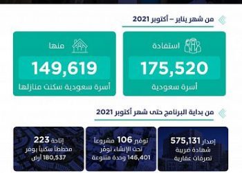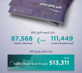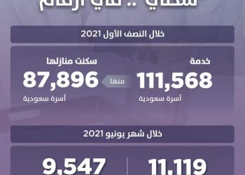 “سكني” يُعلن استفادة 111.56 ألف أسرة من حلوله السكنية المتنوعة خلال النصف الـ1 .. منها 87.89 ألف أسرة سكنت منازلها
